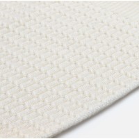 Модель: однотонный плед с фактурной вязкой, которая позволяет сделать его воздушным и объемным. Чередуя различные типы петель на гладком полотне, можно вывязать любую графику — логотип, текст, товарный знак.