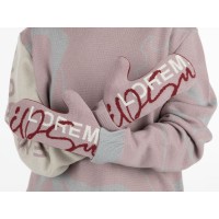 Варежки с вывязанным логотипом и индивидуальным рисунком в фирменной цветовой гамме.