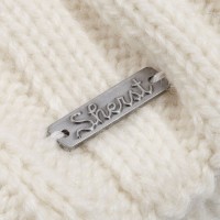 Металлический шильд с названием бренда расположен у заднего шва шапки. Это оставляет место спереди для пришива лейбла или шильдика с логотипом заказчика.
