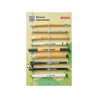 Промо-сет вечных карандашей — это презентационный комплект, включающий 9 уникальных моделей с несколькими вариантами нанесения: УФ-печать, тампопечать, гравировка и круговая гравировка. В сете представлены самые хитовые позиции категории вечных карандашей, а также новинки каталога периода зима-весна 2025 года. Все образцы аккуратно закреплены на стильной картонной подложке при помощи резинового фиксатора. На обратной стороне указаны названия и краткое описание моделей. Промо-набор — идеальный инструмент для презентаций: клиенты могут подержать карандаши в руках, опробовать их на письме и наглядно увидеть различия между видами нанесения. При этом все самые важные модели собраны в одном легком и компактном наборе.