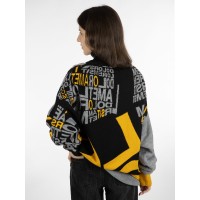 Свитер унисекс с вывязанным логотипом и индивидуальным рисунком в фирменной цветовой гамме.