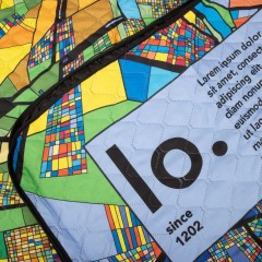 Собираясь на пикник, не забудьте взять с собой практичный плед, который удобно сворачивается, фиксируется резинками и не занимает много места. В стоимость изделия входит полноцветная сублимационная печать с одной стороны. Материал верхнего слоя — габардин, обратная сторона — водонепроницаемый оксфорд черного цвета, наполнитель синтепон.