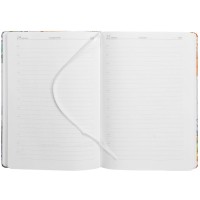 Ежедневник в твердой обложке из картона, дополнен ляссе белого цвета.