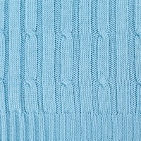 Модель: однотонный плед с фактурной вязкой, которая позволяет сделать его воздушным и объемным. Чередуя различные типы петель на гладком полотне, можно вывязать любую графику — логотип, текст, товарный знак.