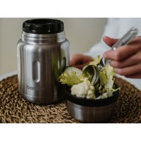 Jerrycan — это термос для еды с удобным широким горлом и встроенной складной ложкой. Термос объемом 700 мл сохраняет тепло до 14 часов, холод - до 20 часов.Jerrycan сделан из нержавеющей стали 18/8. Отдельные элементы пробки и крышки-чашки выполнены из пищевого силикона и безопасного пластика BPA-free. На глухой пробке термоса сделано металлическое основание, благодаря чему еда не соприкасается с пластиком, а внутри колбы не накапливаются запахи. Силиконовые кольца на крышке обеспечивают 100% герметичность.Jerrycan удобно брать в дорогу: в комплекте складная ложка и широкая крышка, которую можно использовать в качестве тарелки. Термос можно мыть в посудомоечной машине — это экономит ваше время и позволяет не изменять бытовым привычкам.Над созданием Jerrycan более 3-х лет работала команда профессионалов индустрии. Лаконичный дизайн термоса удостоен престижной международной премии Red Dot Awards.