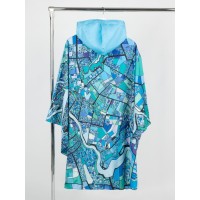 Полноцветная печать методом сублимации с лицевой стороны дождевика и мешка для хранения входит в стоимость изделия. Дождевик с воротником на молнии и глубоким капюшоном со шнурком.