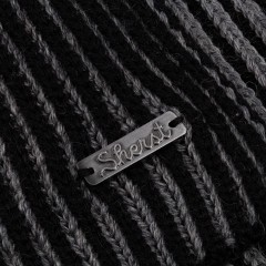 Металлический шильд с названием бренда расположен по нижнему краю изделия, что оставляет достаточно места для пришива лейбла или шильдика с логотипом заказчика.