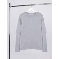 Футболка оверсайз с двойным рукавом Kosmos, светло-серая, размер XS/S