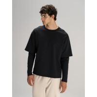 Футболка оверсайз с двойным рукавом Kosmos, черная, размер XS/S