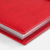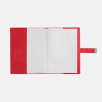 Ежедневник в мягком переплете со съемной обложкой, дополнен застежкой-хлястиком с металлическим шильдом на кнопке, двойным ляссе и капталом.