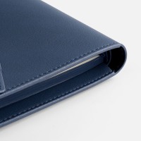 Ежедневник-органайзер в мягком переплете, формат А5+, с карманами для визиток и документов, петлей для ручки. Дополнен ляссе и капталом в цвет обложки. Клапан с прорезями застегивается на кобурные металлические кнопки.