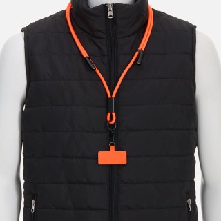Важно: Для крепления телефона на ланьярд телефон должен иметь чехол. Если ланьярд распускается под тяжестью смартфона, убедитесь, что среднее из трех колец фурнитуры находится по центру ланьярда (на шее под затылком), а не сбоку. Соседние ветви оплетки должны идти вместе, без зазоров, так достигается трение ткани о ткань. Слишком тяжелые смартфоны (диагональ 6,9" и более) могут распускать ланьярд при энергичных движениях.