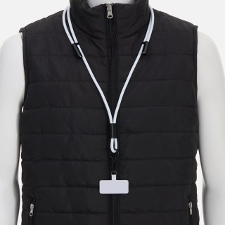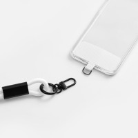 Важно: Для крепления телефона на ланьярд телефон должен иметь чехол. Если ланьярд распускается под тяжестью смартфона, убедитесь, что среднее из трех колец фурнитуры находится по центру ланьярда (на шее под затылком), а не сбоку. Соседние ветви оплетки должны идти вместе, без зазоров, так достигается трение ткани о ткань. Слишком тяжелые смартфоны (диагональ 6,9" и более) могут распускать ланьярд при энергичных движениях.