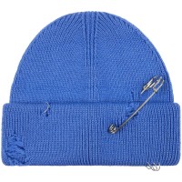 Однослойная шапка бини с рваным отворотом и металлическими аксессуарами для дерзких образов в любом возрасте. Яркий и запоминающийся акцент в стиле гранж. Поставляется в пакете с липким краем.