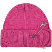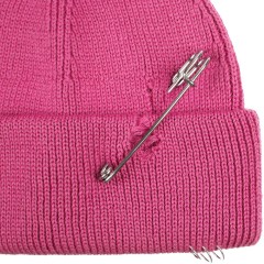 Однослойная шапка бини с рваным отворотом и металлическими аксессуарами для дерзких образов в любом возрасте. Яркий и запоминающийся акцент в стиле гранж. Поставляется в пакете с липким краем.