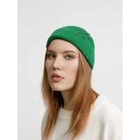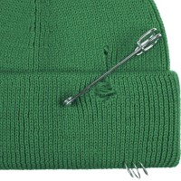 Однослойная шапка бини с рваным отворотом и металлическими аксессуарами для дерзких образов в любом возрасте. Яркий и запоминающийся акцент в стиле гранж. Поставляется в пакете с липким краем.