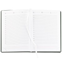 Ежедневник в твердой обложке c поролоном, выполнен из материала La Fite, зеленый FF, дополнен ляссе белого цвета.
