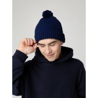 Однослойная шапка из высокообъемной пряжи с помпоном.