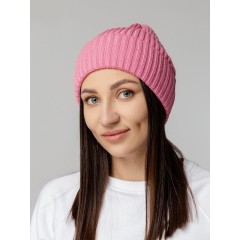 Однослойная шапка фактурной вязки с двойным отворотом.