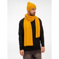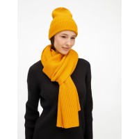 Удлиненная шапка с широким отворотом и фактурной вязкой мягко облегает голову, создавая элегантный силуэт. Широкий шарф с выразительным рельефом позволяет экспериментировать с драпировками, добавляя образу объем и динамику. Перчатки с аккуратной резинкой на манжете обеспечивают идеальную посадку и тактильный комфорт. Набор поставляется в брендированной коробке.