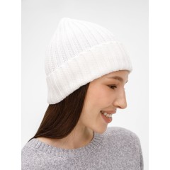 Однослойная шапка рельефной вязки с отворотом.