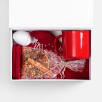 варежки - акрил 100%, футляр для бальзама - пластик, кружка - фаянс, коробка - переплетный картон, бумага Season Touch