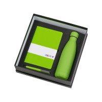 Подарочный набор c блокнотом C1, ручкой и термобутылкой, зеленое яблоко