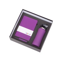 Описание Подарочный набор c блокнотом C1, ручкой и бутылкой, фиолетовый