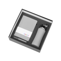 Описание Подарочный набор c блокнотом C2, ручкой и бутылкой, серый