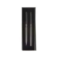 Описание Набор из шариковой ручки и ручки-роллера с анодированным зеркальным слоем в подарочной коробке "Monarch Black", черный