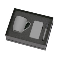 Подарочный набор c кружкой, пластиковой ручкой и повербанком С2, 10000 mAh, серый