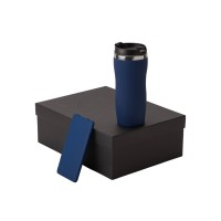 Описание Подарочный набор c вакуумной термокружкой и повербанком С1, темно-синий