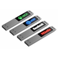 Флешка в тонком металлическом корпусе с пластиковой самоклеящейся шильдой в комплекте. Благодаря встроенной в корпус светодиодной матрице, логотип, выполненный на шильде методом лазерной гравировки, подсвечивается белым, красным, зеленым или синим в зависимости от выбранной модели.