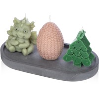 Этот набор свечей подарит вам новогоднее настроение и станет стильным украшением интерьера к любимому всеми с детства празднику.В набор входят три свечи на подставке — милый дракончик, яйцо и ёлка. Они подарят новогоднее настроение и ещё долго будут напоминать про год Дракона.После того, как прогорят все свечи, подставку можно использовать для организации на рабочем столе, как подставку для пало санто или других благовоний, или даже для хранения бижутерии. • Милый новогодний дизайн • Многофункциональная подставка из гипсобетона • Готовая идея новогоднего подарка • Символ 2024 года