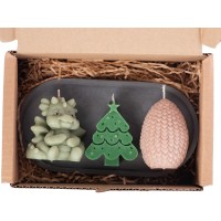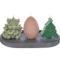 Свечи на подставке "Дракон, яйцо дракона, елочка"