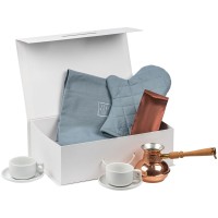 Коробка выполнена из переплетного картона, кашированного дизайнерской бумагой Magic, полученной путем переработки натурального сырья, с крышкой на магнитах.