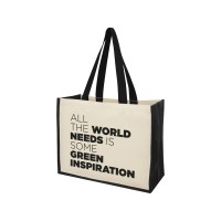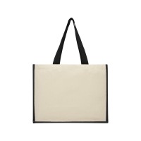Модная сумка для покупок с боковыми панелями (вес 320 г/м?), подходящими для нанесения изображений, окантовкой из ламинированного джута и хлопковыми ручками.
