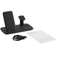 Выходная мощность беспроводного заряда при использовании рекомендованного зарядного устройства QC 3.0 18-25 Вт с параметрами зарядки не менее 5 В, 3 А; 9 B, 2 A; 12 В, 1,5 А (в комплект не входит) - Основная подставка: до 15 Вт - Область для наушников: до 7 Вт - Стойка для смарт-часов (Apple Watch 2...6) : до 2,5 Вт - USB-выход: 5В, 2А