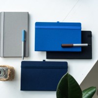 100% эко-блокнот Размер: 130х210 мм Переплет: твердый Обложка:,RPET/рециклированный полиэстер, полученный из переработанных пластиковых бутылок Материал,сертифицирован в Нидерландах,по,Global Ecological Standard Отделка:,жаккардовая резинка 12 мм и пенхолдер в тон обложки Форзац/нахзац: кремовый Блок: недатированный Разлиновка:,в линейку Количество страниц: 256 Углы блока: скругленные Цвет бумаги: кремовый Плотность,бумаги:,70г/м2 Ляссе: в тон обложке Карман для визиток: есть Упаковка:,фирменный сливбокс thINKme