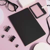 Цвет обложки черныйЦвет обреза белый,Блок прошит, на корешке прошивка в цвет обрезаБлок с элементами планирования, в клеткуРазмер 140*210 мм, переплет мягкийОбложка PU Silk TouchСкругленные углыБумага кремовая, плотность 70г/м2Форзац/нахзац кремовые64 страницы