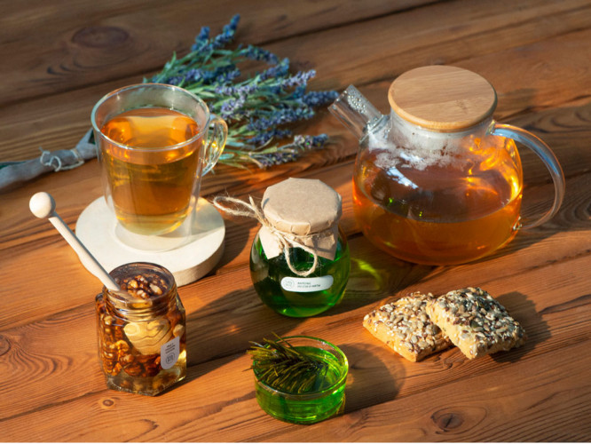 Мед и орехи прекрасно сочетаются друг с другом, образуя оригинальный и запоминающийся вкус. Медовый десерт идеально подойдет для чаепития, поэтому подобный подарок можно также дополнить чаем. Так как продукт состоит из натуральных ингредиентов, возможно его засахаривание.