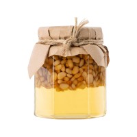 Мед и орехи прекрасно сочетаются друг с другом, образуя оригинальный и запоминающийся вкус. Медовый десерт с кедровыми орешками, не только вкусный, но и полезный, идеально подойдет для чаепития, поэтому подобный подарок можно также дополнить чаем.Так как продукт состоит из натуральных ингредиентов, возможно его засахаривание