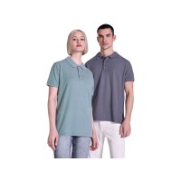Унисекс поло с коротким рукавом, 100% хлопок, аксидная стирка. Рибовый воротник и манжеты по рукавам, боковые разрезы. Отстрочка в тон по планке