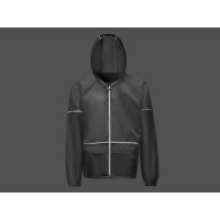 Короткий дождевик прямого силуэта с капюшоном и карманами. Вместительные накладные карманы защищены сверху клапанами, по верхней кромке которых вшит светоотражающий кант. Светоотражающие элементы также расположены на рукавах, капюшоне и молнии, что делает человека заметным даже в темное время суток.Капюшон и низ дождевика затягиваются на шнурки с фиксаторами, что позволяет отрегулировать посадку по фигуре. Манжеты дождевика — на резинке.Поставляется в чехле-мешочке на шнурке для компактного хранения.