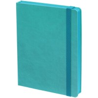 Ежедневник с твердой обложкой, выполнен из материала Latte, цвет морской волны II, обрез бирюзового цвета, дополнен резинкой и ляссе бирюзового цвета.