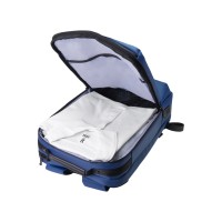 Рюкзак может легко превратится в деловую сумку для командировок, т.к. снабжен дополнительной ручкой для переноски в руке. В комплекте идет съемный металлический шильд под нанесение вашего логотипа.- большой наружный карман на молнии- основное отделение с органайзером с несколькими карманами, в том числе сетчатым на молнии- потайной карман на спинке- USB выход со шнуром- ремень для крепления на ручку чемодана- нетканый мешок для хранения в комплекте