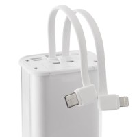 Выходные параметры: – Тype-C, Lightning (кабели): 5 В, 2 А; USB-А QC, Type-C QC и PD (на корпусе): 5 В, 2 A; 9 В, 2 A/12 В, 1,5 A
