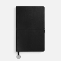 Ежедневник с гибкой обложкой, выполнен из материала Waltz, черный АА, дополнен ляссе в цвет обложки с металлическим шильдом.