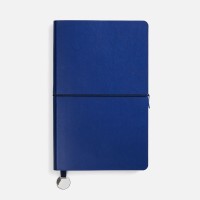 Ежедневник с гибкой обложкой, выполнен из материала Waltz, синий НН, дополнен ляссе в цвет обложки с металлическим шильдом.