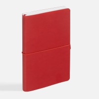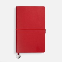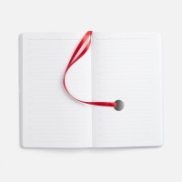 Ежедневник с гибкой обложкой, выполнен из материала Waltz, красный РР, дополнен ляссе в цвет обложки с металлическим шильдом.